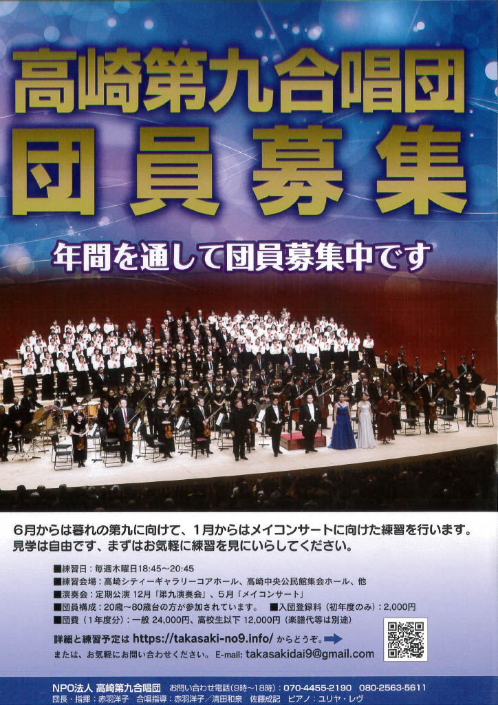 ベートーヴェン第九を群馬交響楽団と高崎芸術劇場で歌う!高崎第九合唱団のホームページです。