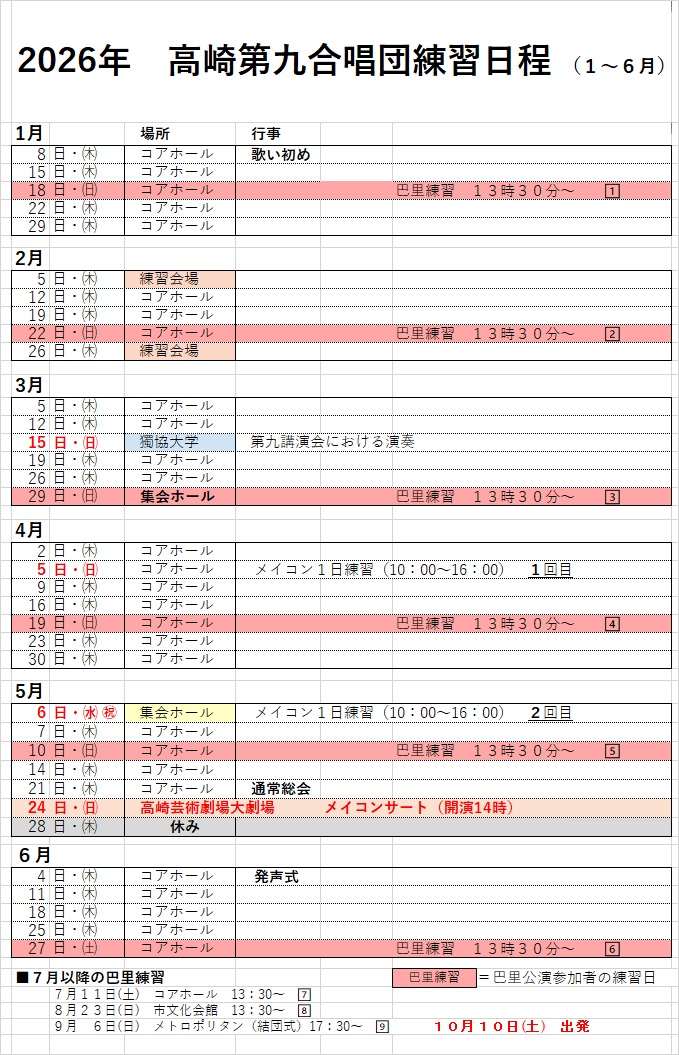 新入団、見学の方はどうぞお気軽にお越しください。18:00~合唱団受付にお声がけください。